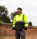 The KEY Hi-Visibility Sight Coat is meant to keep you safe and warm when temperatures start to drop. The reflective tape is sewn on for durability and black fabric is added to areas most likely to get dirty. The adjustable sleeve openings with Velcro closure, traps in the warmth and keeps elements from the weather away. Zippered pockets keep your items safe and secure, while the coat hood tucks into the collar. Rated ANSI Class 2 and ANSI/ISEA 107-2015 compliant. When you need safety, get it in comfort with KEY.